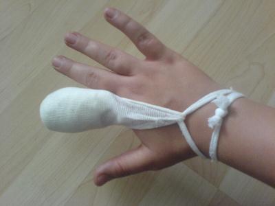 UPDATE: ab heute (23.10.) nur noch ein pflaster. der verband hat ganz schön beim tippen gestört. es heilt gut und eitert nicht.